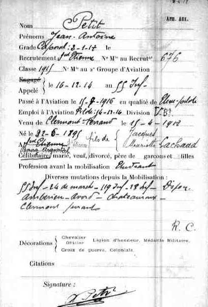 Né le: 22 juin 1895Mort le: Profession avant la mobilisation: Passé à l'aviation le: Brevet militaire le: Parcours: Affectations: VC 110 Pilote