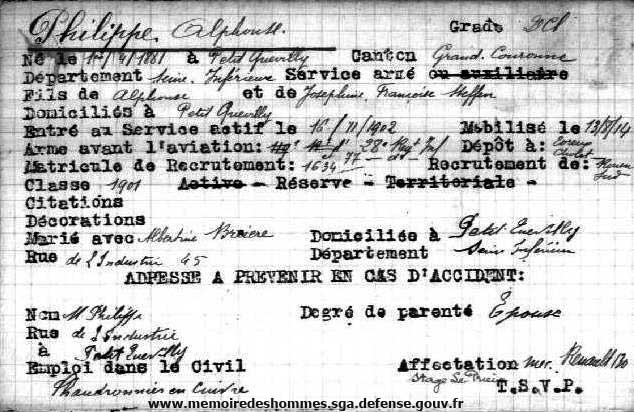 Né le: 1er avril 1881 Mort le: Profession avant la mobilisation: Chaudronnier en cuivre Passé à l'aviation le: Brevet militaire le: Parcours: Mécanicien Le Prieur Affectations: Parc N°10 Mécanicien Le Prieur